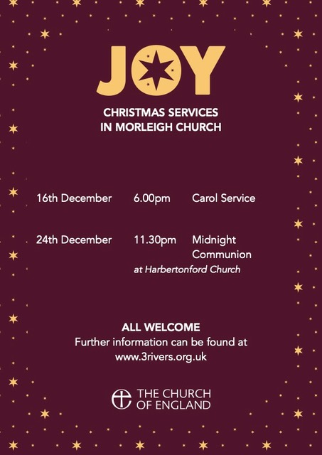 All Saints, Moreleigh has an afternoon service on the 4th Sunday of the month at 4.30pm. On other weeks we join with St Leonards, Halwell and St Peter, Harbertonford in their church buildings at 9.30am..